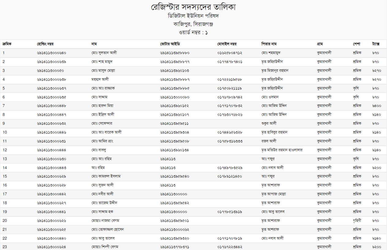ওয়ার্ড, অর্থ-বছর এবং তারিখ ভিত্তিক রেজিস্টার বই তৈরী ।