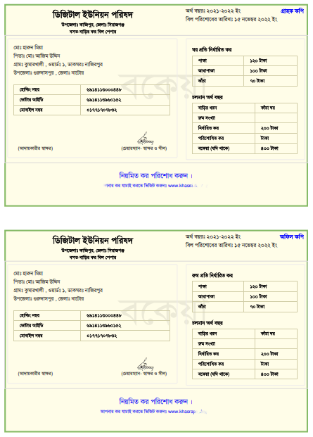 প্রতি অর্থ-বছরে ওয়ার্ড ভিত্তিক বিল পেপার তৈরী ।