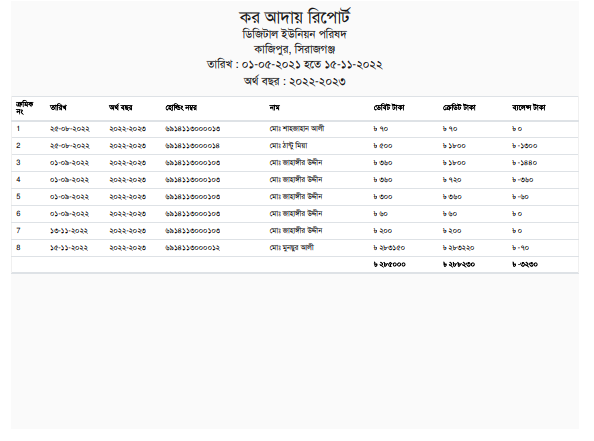 কর আদায়, ট্রেড লাইসেন্স সহ যাবতীয় হিসাবের রিপোর্ট প্রদান ।